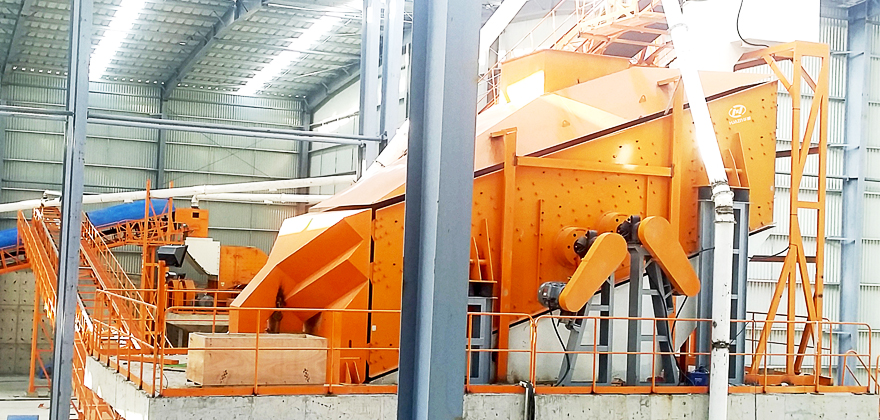 主要設備配置:ZSW1360S棒條給料機1臺、JC110顎式破碎機1臺、PFQ1520強力反擊式破碎機1臺、精品制砂機1臺,3YKR3073振動篩1臺,環保除塵設備及精品砂石拌濕裝備等。