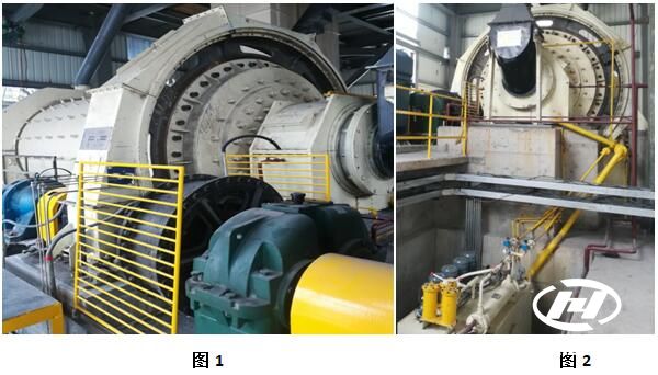 大華重工為山西某鋼廠設計的兩臺GMBZ2445棒磨機,近期帶料試車,設備運行良好。該 設備用于石灰石加工,終端物料用于電廠脫硫作業。該生產線的調試成功為我公司棒磨機產品 提供了新的發展方向。該磨機采用滑動軸承支撐,進料斗給料、周邊排料。如圖1、圖2 所示。現場情況如下: