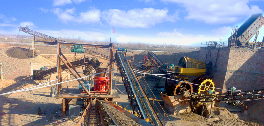 根據(jù)工程的需要,該系統(tǒng)也可以配置制砂系統(tǒng),用于生產(chǎn)合理級配的精品砂(如虛線框內(nèi)所示),當(dāng)需要生產(chǎn)精品砂時,可以從一篩篩分車間篩分后分離出5-40mm的混合物料通過皮帶機輸送至制砂車間的半成品料倉,再通過振動給料機將物料均勻的給至制砂機,經(jīng)過制砂機破碎后的成品混合料再通過皮帶輸送機輸送至二篩篩分車間進行篩分,從而分離出不同顆粒級別的成品。