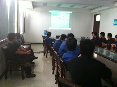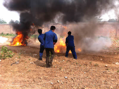 下午14:00,演習正式開始。首先是對員工消防意識的培養,公司從各部門選派的20名“消防隊員”認真觀看了《消防器材的使用方法及火災初期的撲救措施》和《洛陽東都商廈火災案例》2個視頻,這使員工從思想上更加重視消防安全并初步了解了消防器材的操作要點;接著,大家來到二號車間南側操場的演習現場,辦公室穆主任對滅火器的正確使用做示范演講之后,消防隊員拿起滅火器材沖向“著火點”進行“滅火”,僅幾分鐘時間,現場大火就被全部撲滅。