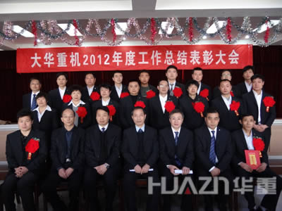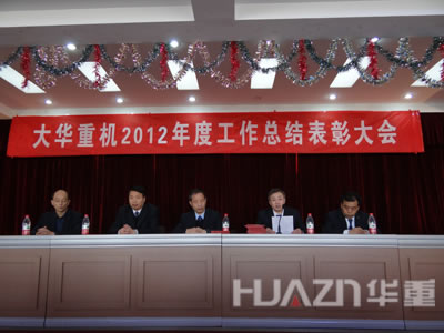 大華重機公司在辦公樓415會議室召開2012年度工作總結表彰大會。此次大會由公司副總經理程自強主持,公司董事長苗三周、總經理張紅彥、副總經理郭學師、支部副書記王獻宏出席會議,各部門員工近百人參加了大會。