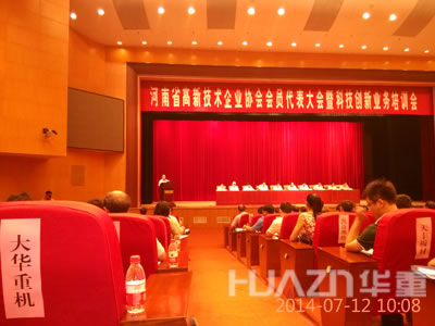 2014年7月12日,河南省高新技術企業(yè)協(xié)會代表大會在鄭州黃河迎賓館召開,我洛陽大華重機公司作為高新技術企業(yè)代表,作為協(xié)會會員單位出席了代表大會。