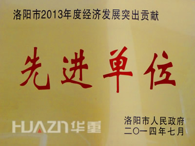 在洛陽市人民政府辦公室《關于表彰獎勵2013年度洛陽市經濟發展突出貢獻獎的通報》中我洛陽大華重機公司被市政府授予創新能力“突出貢獻獎”,公司董事長苗三周榮獲“2013年度洛陽市經濟發展突出貢獻先進個人”稱號,這充分肯定了我公司在技術創新方面所作出的努力。