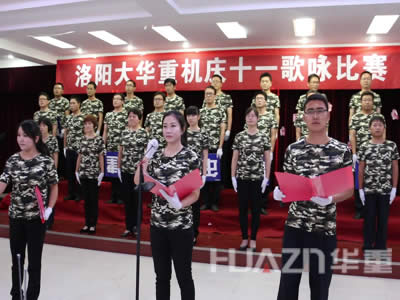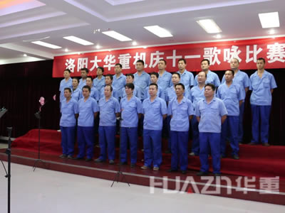 在國慶節(jié)來臨之際,為慶祝中華人民共和國成立65周年,9月30日下午兩點,我洛陽大華重機(jī)公司特舉辦“迎國慶、頌歌獻(xiàn)給祖國”歌詠比賽。旨在傳播愛國主義教育,加強(qiáng)企業(yè)文化建設(shè),激發(fā)員工愛國熱情和干事業(yè)、謀發(fā)展的激情,增強(qiáng)公司員工隊伍的凝聚力、向心力,展示我公司員工積極向上的新風(fēng)貌。