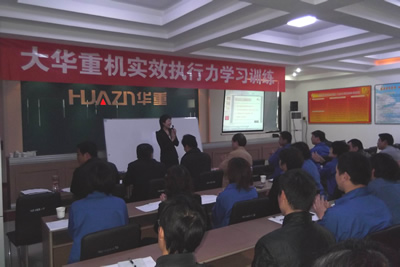 2011年9月19日,下午14時整,一場主題為“實效執行力”的培訓課在洛陽大華重型機械有限公司四樓會議室如期舉行,參加培訓的有公司中高層80余名管理人員,這是大華重機切實推行“學習型企業”建設的具體實施活動之一。