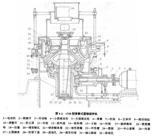 彈簧式圓錐破碎機具有破碎比大、效率高、功耗少、產品粒度均勻和適于破碎硬物料等特點,所以當今世界各國仍廣泛地采用,并對它進行了改進,采用液壓裝置等,使它更加完善。