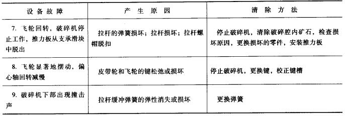 顎式破碎機常見的設備故障、產生原因和消除方法列于下表中。