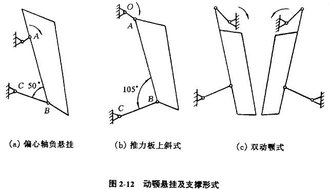 ①將傳統復擺顎式破碎機偏心油裝置正懸掛改為負懸掛,如圖2-12a所示,破碎機特性值m得到改善,齒板壽命可延長50%,節能10.5%,產量提高20%,機重可減輕20%。