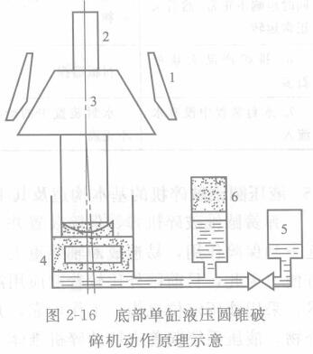 底部單缸液壓圓錐破碎機動作原理如圖2-16所示。