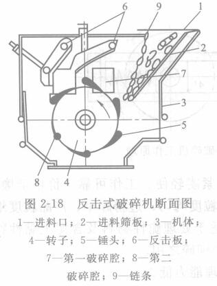 反擊式破碎機是一種高效的新型破碎設(shè)備。圖2-18為反擊式破碎機的斷面圖。
