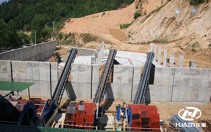 近期大華重工一項400t/h精品砂生產系統在陜西洛南落成,主要生產的物料為花崗巖,在此生產線中主要設備有:JC125顎式破碎機、GPY400S單缸液壓圓錐破碎機、PFY1315硬巖反擊破碎機、PLS-1200立式沖擊破碎機、LZ30-65細砂回收一體機等,采用的處理方式采用洗砂回收一體機集水洗砂、細砂脫水回收為一體,巧妙的將細沙回收機與洗砂機進行對接,有效控制人工制砂過程中細沙流失率,提高成品砂的細度模數。